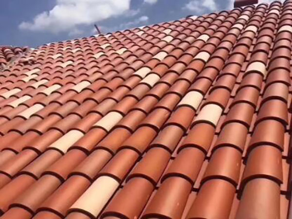 3、西班牙瓦防水性強(qiáng):西班牙瓦采用模壓成型, 其瓦谷底部的結(jié)構(gòu), 可以讓雨水的流出更加順暢和迅速, 避免了可能會(huì)出現(xiàn)的雨水逆流現(xiàn)象。另外, 西班牙瓦頭部高出部分使得水平屋面上也不會(huì)出現(xiàn)雨水逆流、漏水等現(xiàn)象.。